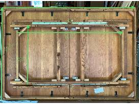 0Table Top Only w/2 leaves Solid (oak) table top only with 2 leaves. Top opens to store leaves. It's a very nice dining table top in good condition, but it needs a base or legs built for the frame. 42" wide x 60" long, 92" long with leaves Length: 60 in. Width: 42 in.