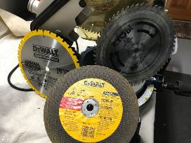 Condition: Used - Very Good Lightly used saw with four blades--Aluminum cutting, steel crosscut wood-cutter, carbide blade, and a new general-purpose woodcutter.