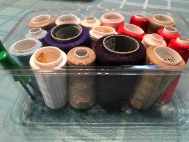 Also includes a small bin of various colored thread (see picture). Length: 15 in. Width: 10 in. Height: