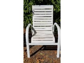2 Metal Framed White Vinyl-webbed Chairs with Matching Reclining Lounger