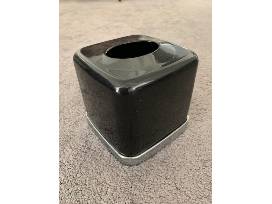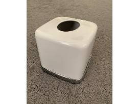 Metal tissue box holders (contemporary black and white with chrome trim). Standard square tissue boxes fit in them.