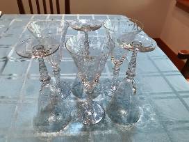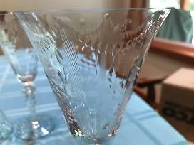 Beautifully hand-etched flared glasses. Almost perfect--one has a tiny chip on the rim.