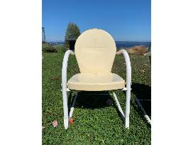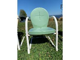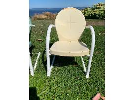 Used outdoors so showing wear. Some rust on rims of yellow chairs.