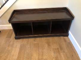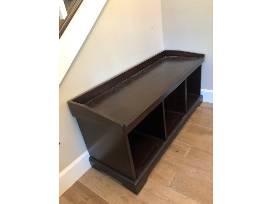 0Mahogany Entryway Bench with 3 Cubbies for baskets.