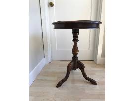 Specifications: 19.5" diameter and 25" tall. Mahogany color, dark wood finish. Purchased about twenty years ago. Indonesian manufacture. Nice for living room or as bed side tables.