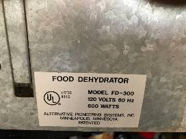 Electric dehydrator with 9 trays. Adjustable temperature and either recycle or flow-through air mode.