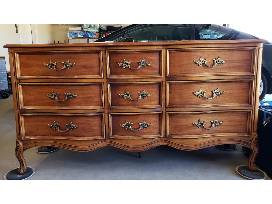 0Vintage French Provincial Style Dresser & Mirror - Dixie 9-Drawer Dresser