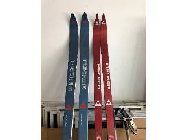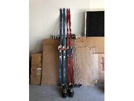 Two pair of Fischer Cross-country skis, poles and Asolo boots