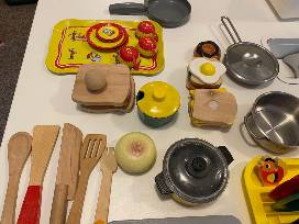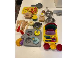 0Play Kitchen with toy pots, pans, lots of food, and accessories.