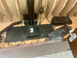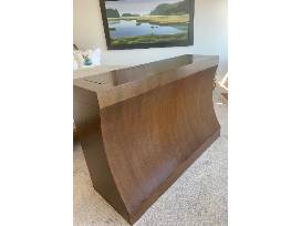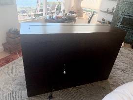 Custom-made, Large Flat-screen telescoping TV Lift. Includes programable Nevo C3 Universal Remote, universal mount and back plates for easy mounting of a large flat-screen TV, fully functional, Includes all instructions for Lift. Programmable height adjustment, 360 degree swivel, remote flasher/component controllers, amplifier. Contemporary design, cabinet is finished in Pecan/Mahagony wood tones veneer.