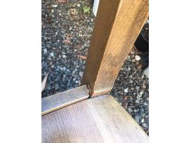04 Solid Wood Dining Chairs , possibly Pottery Barn, but not labeled as such. 38" tall, 19 1/2" wide, 18" deep. Good condition. Very stable. No wobbles. One chair has small round water stain. There is some small separation between the back and seat. Very minimal and chairs feel completely solid.