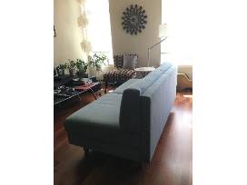 0Blue La-Z-Boy Loveseat -a contemporary style loveseat. Light blue canvas fabric. Some light wear and tear. Pet and smoke-free home. Perfect for small, contemporary spaces.