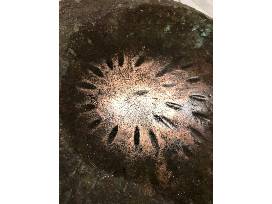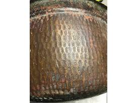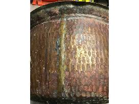 Solid hand-hammered and brazed copper bowl (planter). I polished the bottom center to show the color. Height: 8 in.