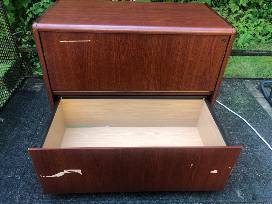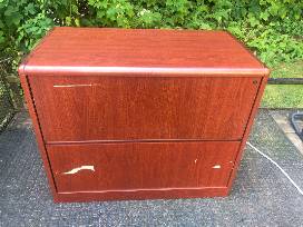 1Two Drawer Wood Filing Cabinet, Cherry veneer, some residue tape on outside, but solid.