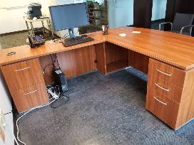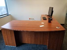 Specifications: Cherry wood/laminate new desk - set up in visiting/guest office for three years and never used.