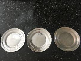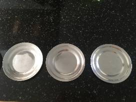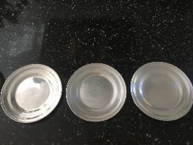 Dress up your table setting with these 11 Armetale butter plates. They're not made from pewter so can be used for eating. All are marked on the back with RWP. The plates look slightly asymmetrical in photos due to the camera angle, but they all are symmetrical.