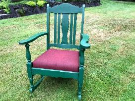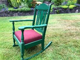 0Green Wooden Rocker w/ Cushion