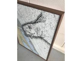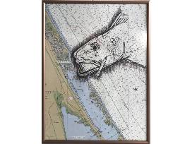 Original redfish drawing on a nautical chart of Mosquito Lagoon by Amanda Krpan. This is an authentic nautical chart of Mosquito Lagoon. Amanda Krpan is a CCA Florida Regional Director and loves drawing fish on charts. Her favorite fish to catch and draw is the Redfish and used permanent marker as her medium in this piece. A lot of love and passion goes into making art and she hopes you see that in her work. This piece measures 12in x 16in and is framed in a metallic brown frame.