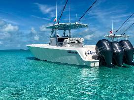 You'll be fishing in style aboard a Contender 39 STpowered by the reliability of triple 300 Yamaha outboards. The 39 ST continues to dominate the offshore scene with aggressive lines that tout an elevated level of confidence. Features include a one-piece level deck from bow to stern, twin raised livewells, walk-through transom, self-bailing cockpit, and a walk-in step-down console to name a few.