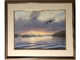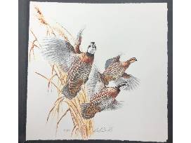 This Herb Booth original is so special it comes with "In the Sporting Tradition: The Art of Herb Booth" published by Texas A&M University Press. The book talks about Herb Booth's life and inspiration for his art. It has a list of almost all of Herb Booth's limited-edition prints, photos of some of his plates, an artist's proof, and an original piece. Herb Booth wedded his artistic skills with decades of experience as a naturalist and hunter. Today he is one of the best known and most sought-after painters of sporting and wildlife scenes in Texas. Collectors of sporting art throughout the country also know and value his work. Booth's work has appeared in many of the nationally known sporting magazines. He has designed eleven conservation stamp prints. He is best known for his watercolor paintings, but he also does original graphics. Author Michael McIntosh notes: "It is a peculiar fact of sporting art is that it cannot be successfully faked. A sporting scene, if it aspires to any degree of acceptance, must not only reflect genuine experience on the artist's part but must also evoke the memory and feeling of similar experience in the viewer." In Booth's art the sense of authenticity and depth of personal experience are instantly recognizable. For the past twenty years he has specialized in personalized sporting scenes. His painting of families hunting or fishing together have become instant family heirlooms for the people who buy them.