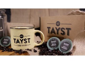 Comes with 10 bold and brazen compostable coffee pods from TAYST and two TAYST mugs