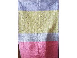 Throw size quilt, 40" x 60". Made by local nationally-known quiltmaker and teacher Madge Ziegler from her original Kiera's Quilt pattern. High-quality quilt shop fabric. Hand-quilted. This colorful quilt would make a great baby gift or couch throw.