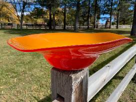 This beautiful glass bowl in bright red and orange will define a dinner table, or an entire room. Handmade by Martin Gerdin '11 and the Glassblowing Service Crew.