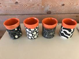 Enjoy your favorite beverage in these creatively handmade cups from the Ceramics Service Crew! Each mug has a unique design. This set was crafted by Merritt Baldwin '22, Watts Brooks '23, Anastasia Weisenbacher '25, and Betsy Bingham-Johns.