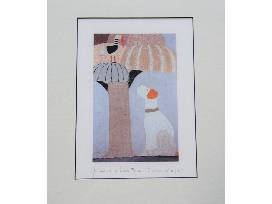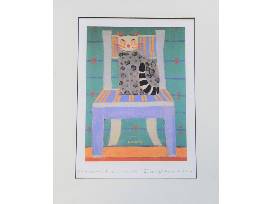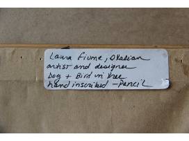 Includes the humorous work "The Tree of Sighs" depicts a dog and bird gazing at each other from their respective vantage points, and "Licia's Birthday," illustrating a cat on a chair. Both matted and framed. (13x15")