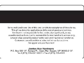 Card good at all Joeten Ace Hardware stores on Saipan, Rota and Tinian.