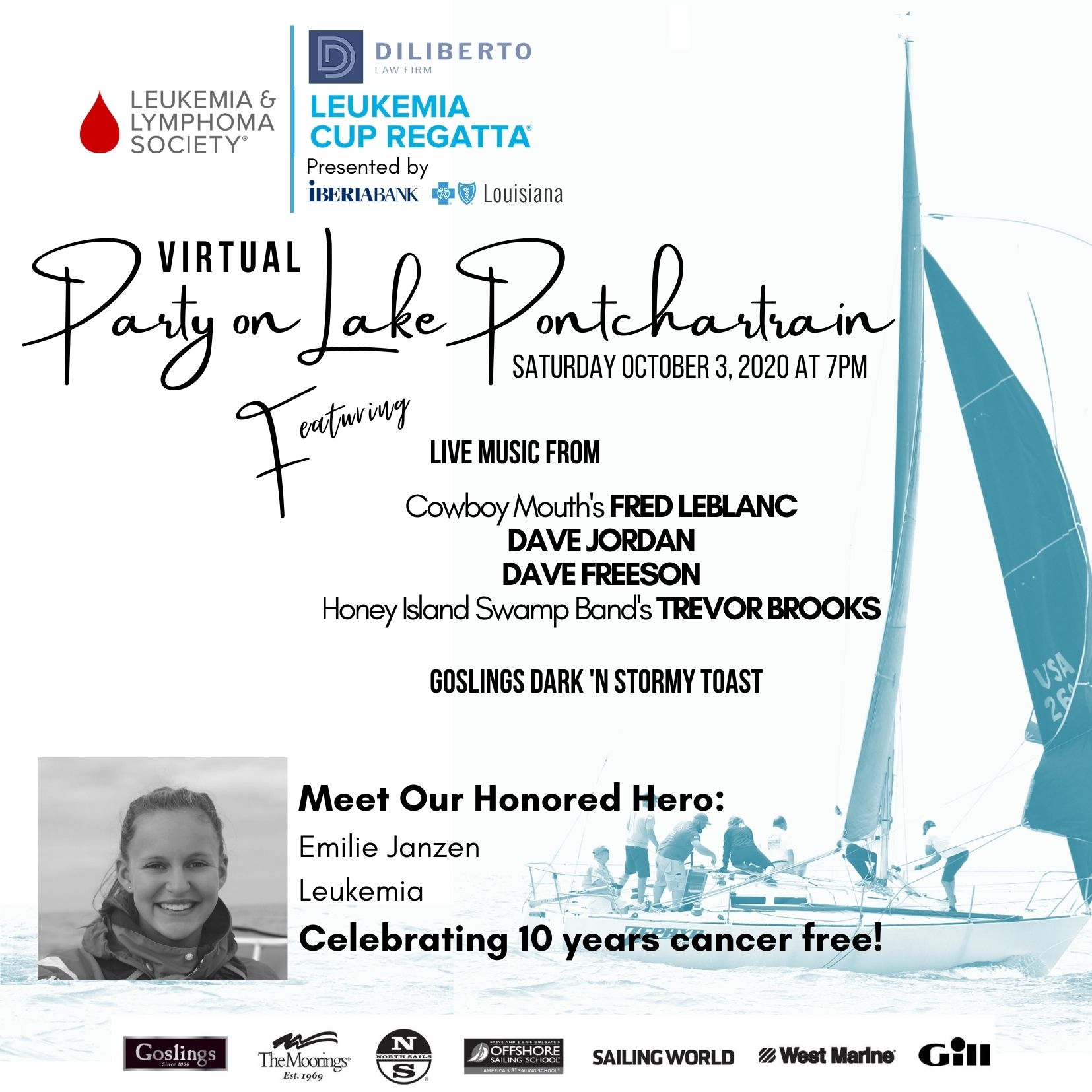 VIEW ITEMSWe're quickly approaching the 2020 Diliberto Law Firm Leukemia Cup Regatta presented by IBERIABANK and Blue Cross and Blue Shield of Louisiana. Throughout the October 2nd - 4th weekend, we will be hosting three races and one BIG virtual party!