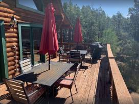 This 5 bedroom, hand built log home can be enjoyed for 7 nights in beautiful and secluded Bayfield, CO (just outside of Durango, CO). Set at 8500 feet altitude, this 3 story cabin features 2 decks, 5 bedrooms, 3 bathrooms, 2 living rooms, breathtaking views of Vallecito Lake on the valley floor, hiking trails and wildlife at your doorstep. It is close to ski resorts (Durango Mountain), the Silverton Train, Mesa Verde National Park, the San Juan mountains, horseback riding, fishing, Pagosa Springs, white water rafting and more. Dates subject to availability.