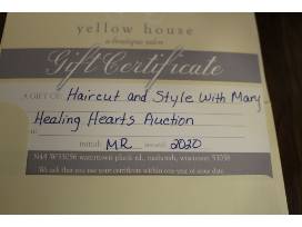 Also included is valuable gift certificate for a Hair Cut and Style by Mary at the Yellow House Salon, tucked quaintly into downtown Nashotah.