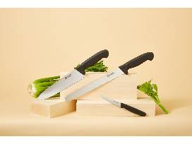 Ready to shake things up in the kitchen? First, you'll need the right tools to curate your delicious, home-prepared culinary masterpiece, and this offering can help! The utensils set features 12 no-frills tools for prepping your ingredients and serving your meals. This set has you covered for countless kitchen tasks, but doesn't include anything that you won't use. The knife set includes a chef's knife, a bread knife, and a paring knife. Each knife is lightweight, well-balanced and the perfect length for its task. Hand-honed, high-carbon steel blades sharpen easily and hold their edges for a long time. Extremely resistant to rust and stains. Slip-resistant polypropylene handles. They'll get the job done and are easy to care for. All pieces are BPA-free. Dishwasher-safe except for the wooden spoon and fish spatula. Place your bid today!
