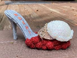 Want to be the envy of all who know you? What better way to do that than to own this cherished glitter shoe, named "NOCHI A La Mode"? These bespoke, bedazzled shoes are one of Mardi Gras' most coveted signature items, a cherished piece of one-of-a-kind New Orleans artwork. This fabulous, unique design was crafted as a keepsake to honor NOCHI and will certainly be a conversation piece you can proudly display to light up any room. Bring some glitter to your life and place your bid today!