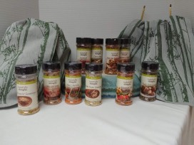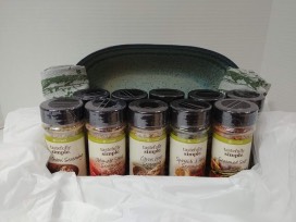 This package has ten of Tastefully Simple's most popular herb and spice mixes, along with a beautiful oven to table casserole dish for your creations and two tea towls to help with clean up.