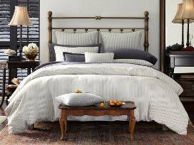 For nearly 100 years, Matouk has handcrafted the world's finest linens from the finest materials. Creating products with the meticulous care and quality you want for you and your family. You will enjoy waking up to these luxury Tristen Anthracite/White Queen sheets complete with a fitted sheet, flat and 2 standard pillow cases. Tristen is a lived-in stone washed linen with a touch of smart style adding a handsome yarn-dyed stripe and a simple corded edge to finish. Elegant!