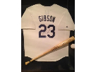Authentic Los Angeles Dodgers Jersey, baseball and bat autographed by Kirk Gibson. All three items are professionally mounted and beautifully encased in a custom made shadowbox.