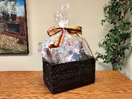Includes: 3 bottles of wine, crackers, chocolates, and two Nevins Inc 60th Anniversary wine glasses.