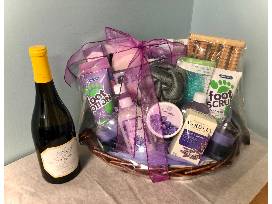 1Includes: feet care products, bath products, eye mask, candles, a bottle of wine, and two Nevins Inc 60th Anniversary wine glasses.