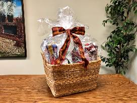 Includes: 3 bottles of wine, crackers, chocolates, and two Nevins Inc 60th Anniversary wine glasses.
