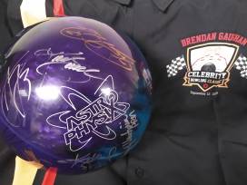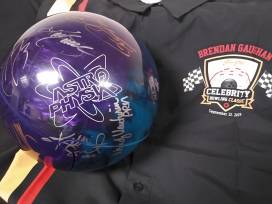 Bowling ball signed by multiple NASCAR drivers during the 2019 Brendan Gaughan Celebrity Bowling Classic at the South Point Hotel, Casino & Spa.
