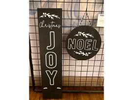 A holiday round and porch sign to greet your guests, and a gift card for AR Workshop Lawrence to personalize the signs.