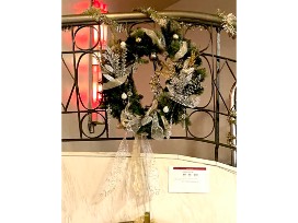 Traditional holiday wreath decorated with silver and gold