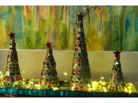 Got the pandemic blues? This forest of colorful mosaic trees will have you dreaming about all the colors of the rainbow. Handcrafted by local artisans.