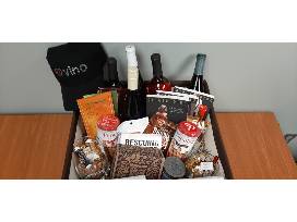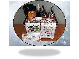 Plus various chocolates, candies & snacks to pair with the wines, 2 stemless wine glasses, a trilogy of autographed romance novels from a local award winning author Ginger Ring, a 3 piece silver bar set from Brighton, misc. accessories including wine flavored lip gloss, wine related kitchen towels, cocktail napkins and a baseball cap.