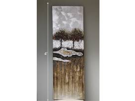 Package includes a beautiful canvas to hang in your home or office from Korgers Decorating. The painting portrays 2 abstract trees on canvas backdrop. Measures 16" wide by 47" long, so just short of 4 feet tall.
