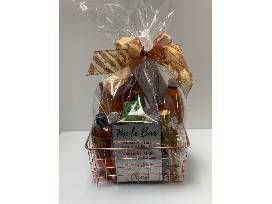 Everyone's favorite mules! This basket includes everything you need for a fun evening. You've got the Moscow Mule with Titos Vodka, the Bourbon Mule with Bulliet Bourbon and, of course, the Mexican Mule with Hornitos Tequila all packaged in a copper basket with White Mule Mugs, Cutting Board, Lime Juice, Lime Press, cocktail napkins and more! All liquor bottles are 375 ml.