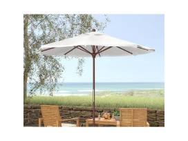 Enjoy some shade! Brighten up your patio with this 7' white market umbrella featuring the Botonist Gin logo.