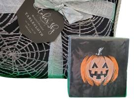 - and a metallic printed spiderweb patterned tablecloth 60" x 102" oblong